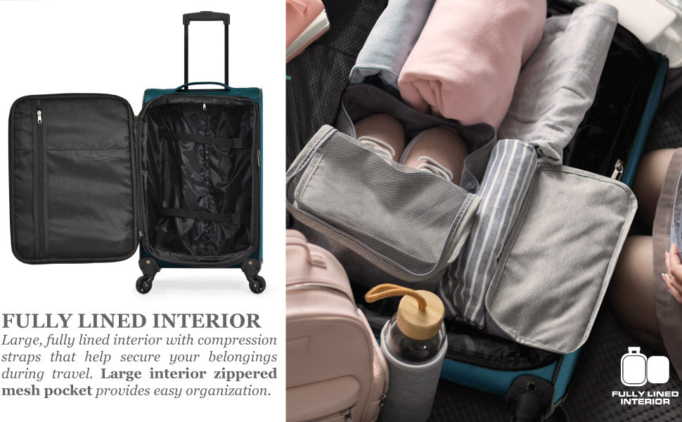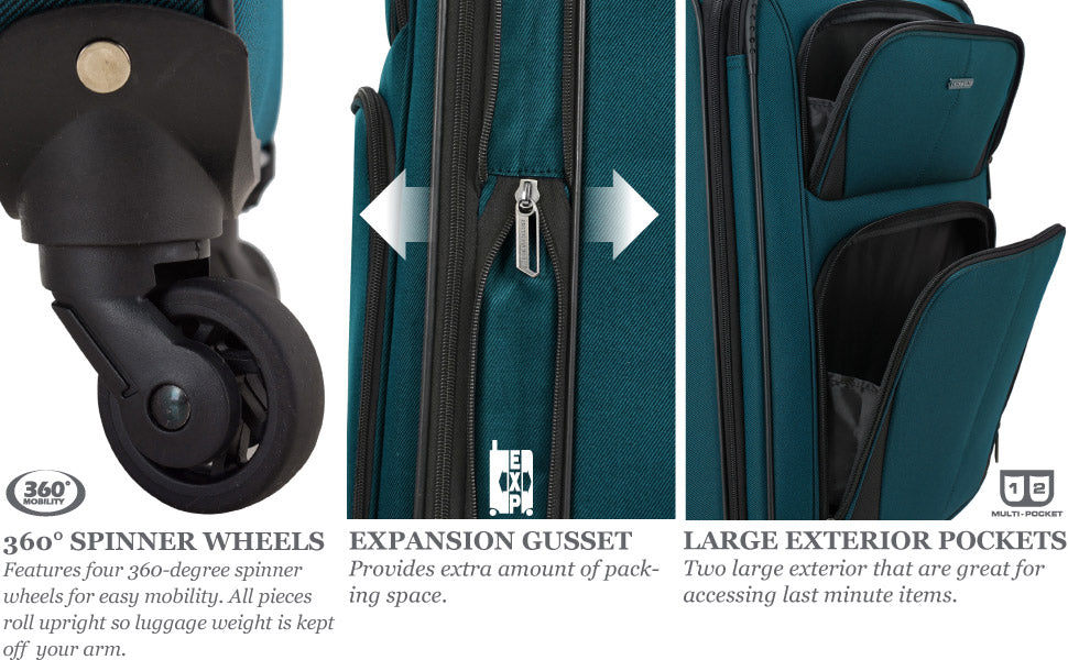 Effortless Mobility: The four multi-directional spinner wheels allow for smooth and easy mobility in any direction. All pieces roll upright, eliminating the need to carry the weight on your arm. Maneuver through airports and crowded spaces with ease.